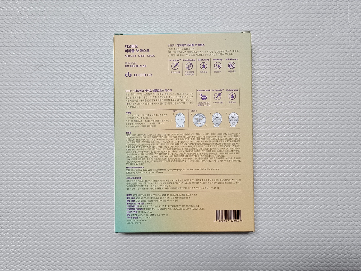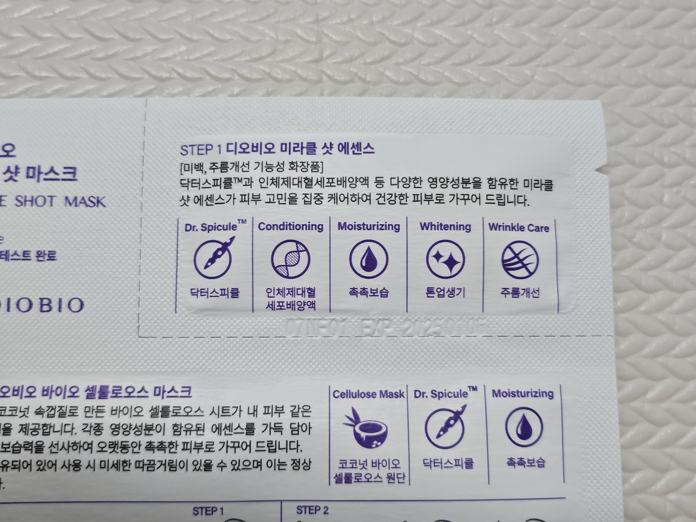 디오비오 미라클 샷 마스크는 두 가지 단계로 나뉘어 있습니다.