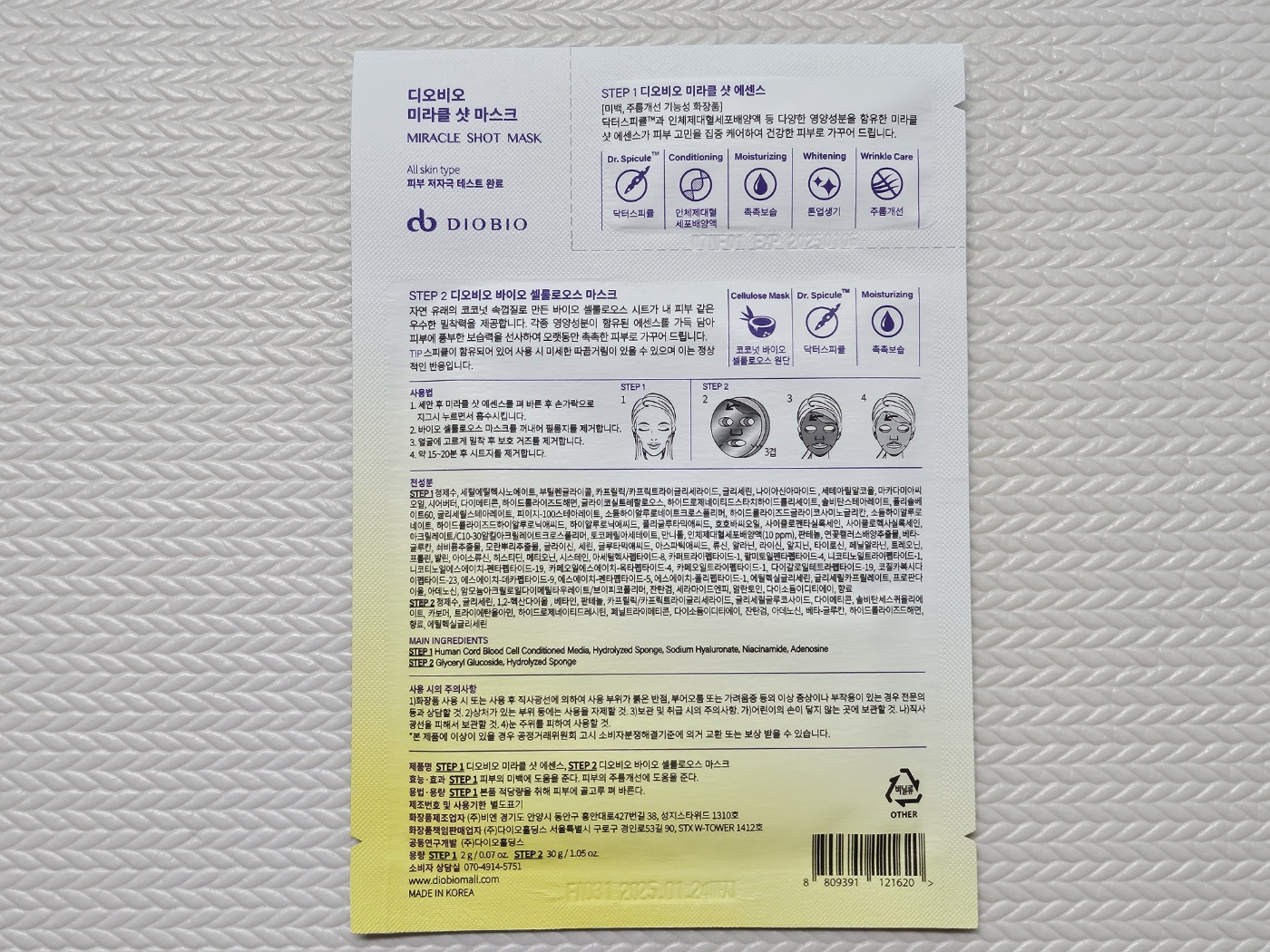 디오비오 미라클 샷 마스크: 피부에 생명을 불어넣는 마법의 마스크