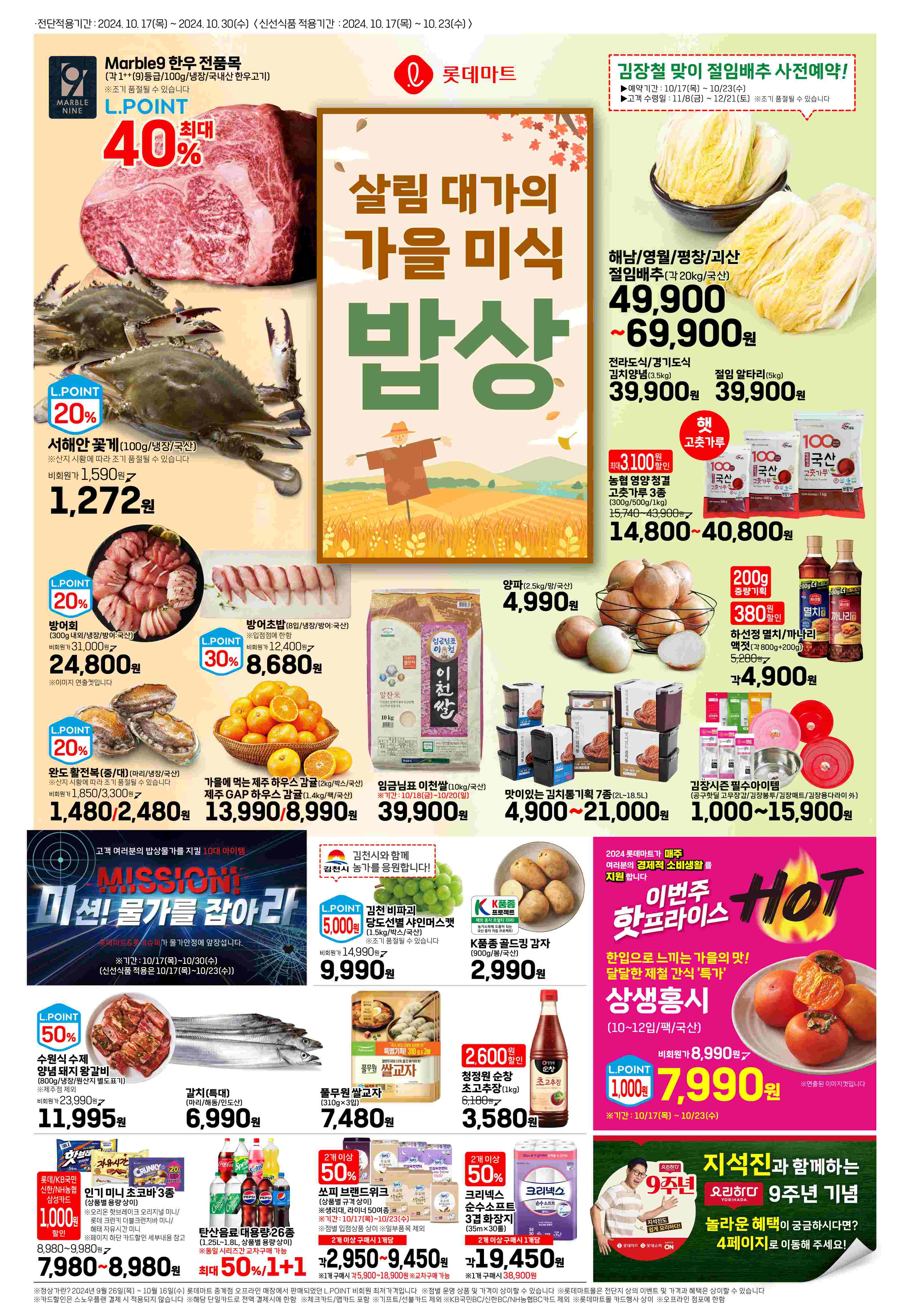 오늘은 롯데마트에서 진행하는 2024년 10월 17일부터 23일까지의 특별 할인 행사에 대해 소개해드리려고 합니다. 가을 미식을 즐기고 김장을 준비하기에 좋은 이번 행사, 함께 살펴볼까요?