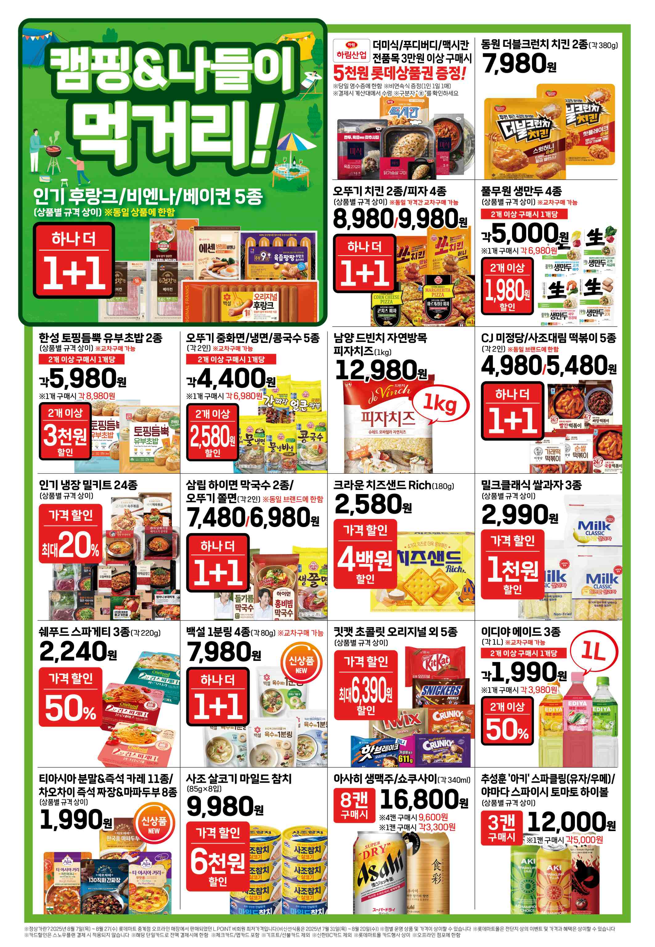 - 오뚜기 치킨 2종/피자 4종: 1+1 행사