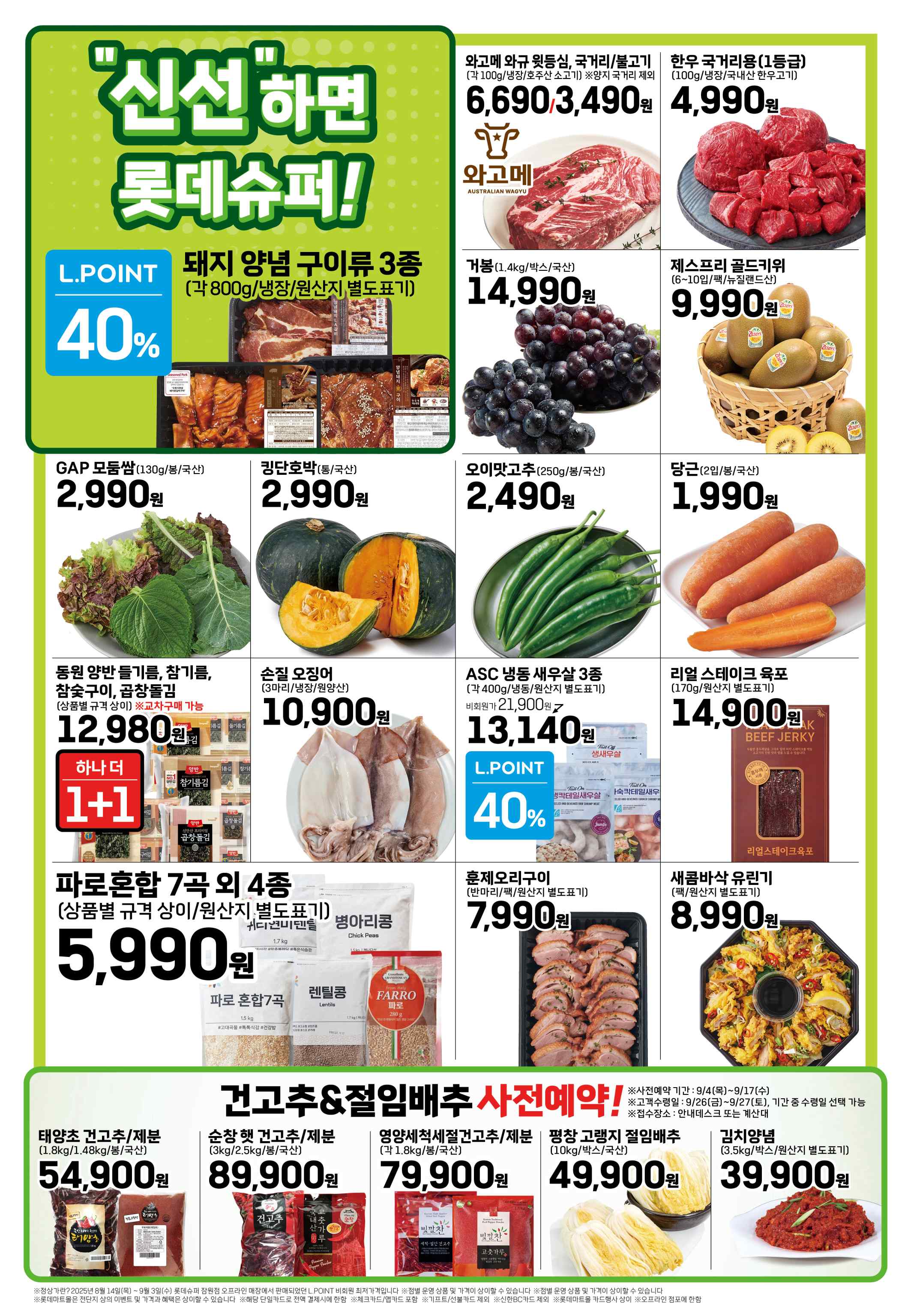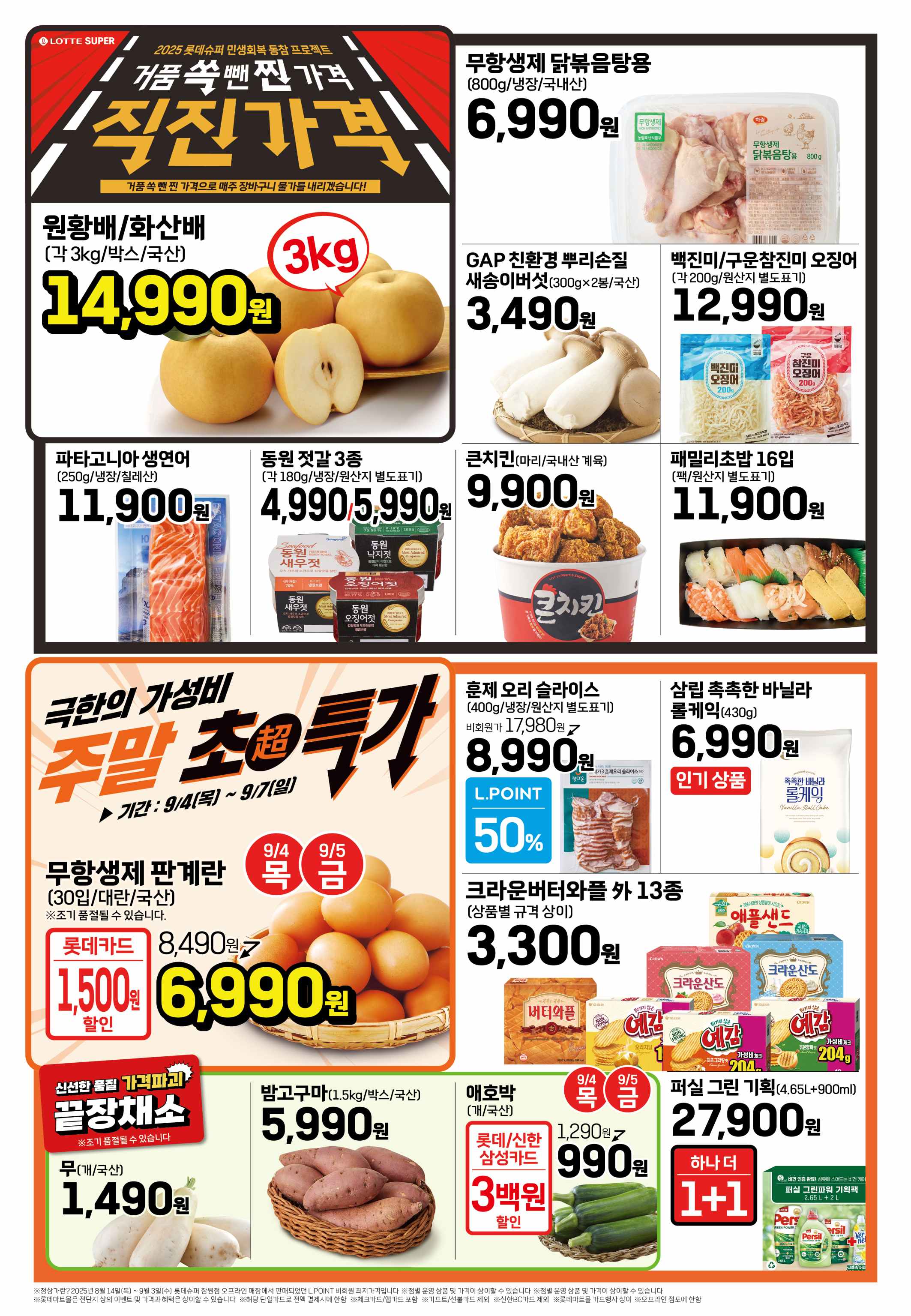 선선한 바람이 부는 9월, 가을의 시작과 함께 롯데마트가 풍성한 할인 행사를 준비했습니다. 9월 4일부터 10일까지 진행되는 이번 행사에서는 신선한 제철 먹거리부터 온 가족이 좋아하는 간편식까지, 다양한 상품들을 놀라운 가격에 만나볼 수 있습니다.