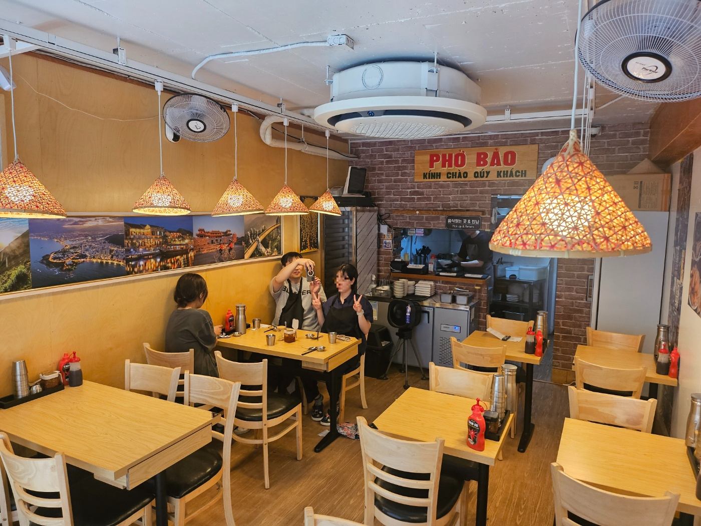 포바오는 아늑하고 쾌적한 분위기를 자랑합니다. 내부 인테리어는 베트남의 전통적인 요소를 반영하여 따뜻하고 편안한 느낌을 줍니다. 점심시간에는 바쁜 직장인들이 많이 방문하지만, 넓은 공간 덕분에 대기 시간이 길지 않아 빠르게 식사를 할 수 있습니다. 또한, 쉐프겸 사장님의 서비스 또한 만족스럽습니다.