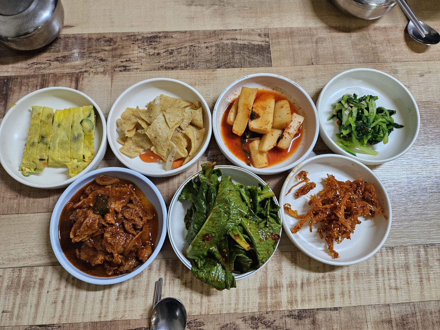 닭볶음탕 정식은 다양한 반찬들로 구성되어 있으며, 각 요리는 맛과 풍미가 뛰어납니다. 특히 계란말이, 총각김치, 재육볶음 등이 인기 있는 메뉴로 자리 잡고 있습니다. 각 요리는 신선한 재료로 만들어져 맛있게 즐길 수 있습니다.