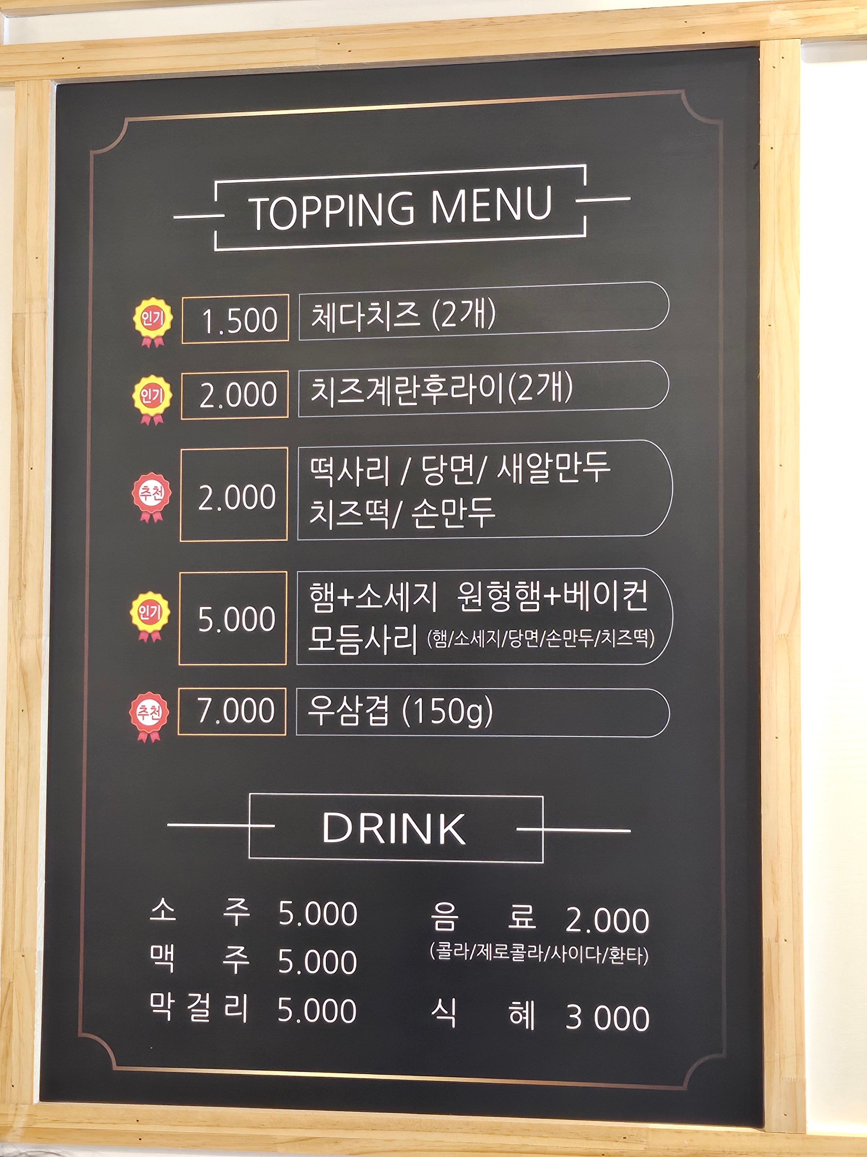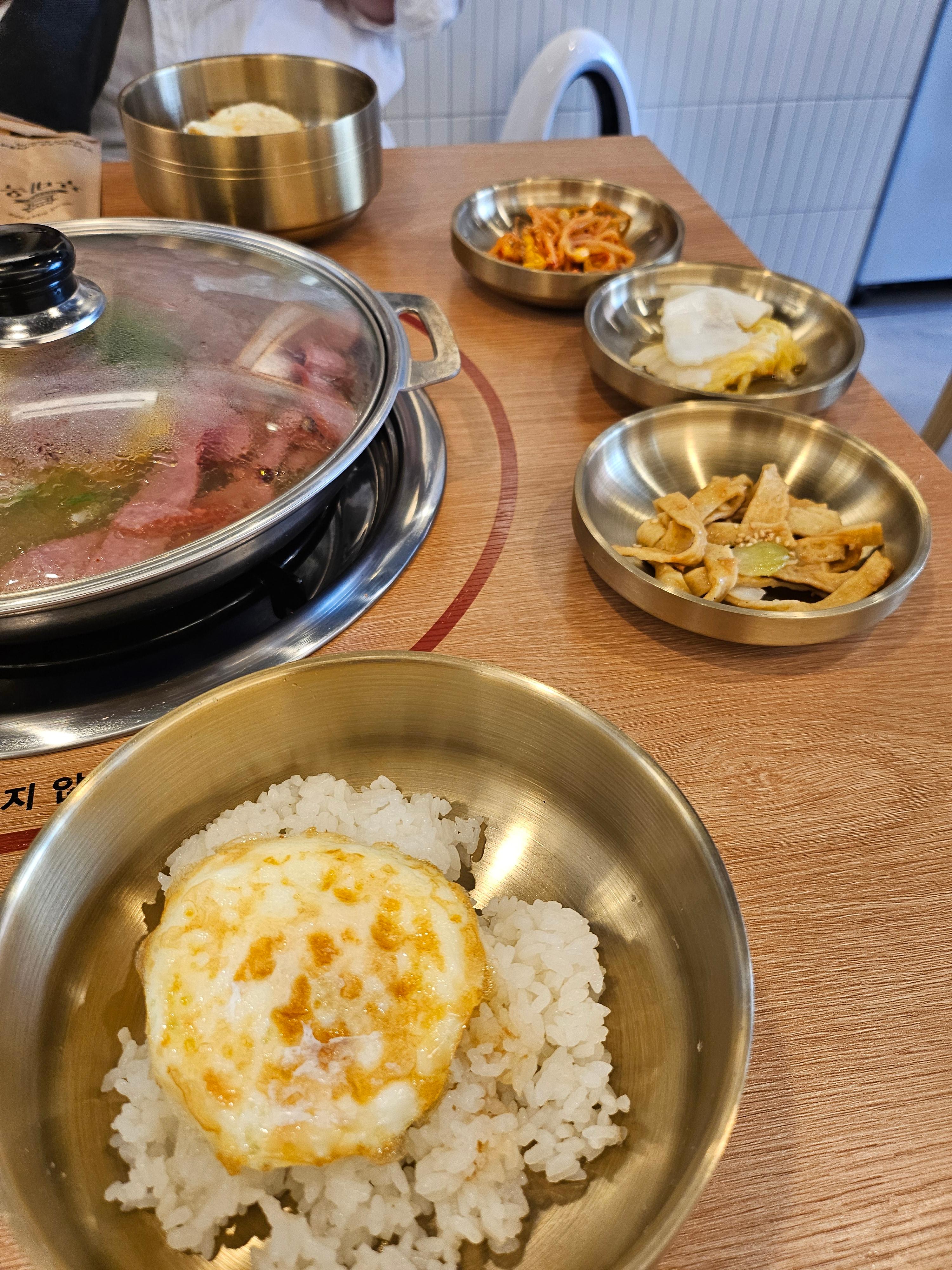 부대찌개 외에도 반찬이 식사의 완성도를 높여줍니다. 김치, 오이무침, 콩나물 등 기본 반찬이 정갈하게 제공됩니다. 특히 깍두기는 부대찌개와 환상적인 궁합을 자랑합니다. 블로그 후기에서도 반찬의 신선함과 맛이 큰 호평을 받고 있습니다. 추가로 주문 가능한 계란찜이나 된장찌개도 인기 메뉴입니다.