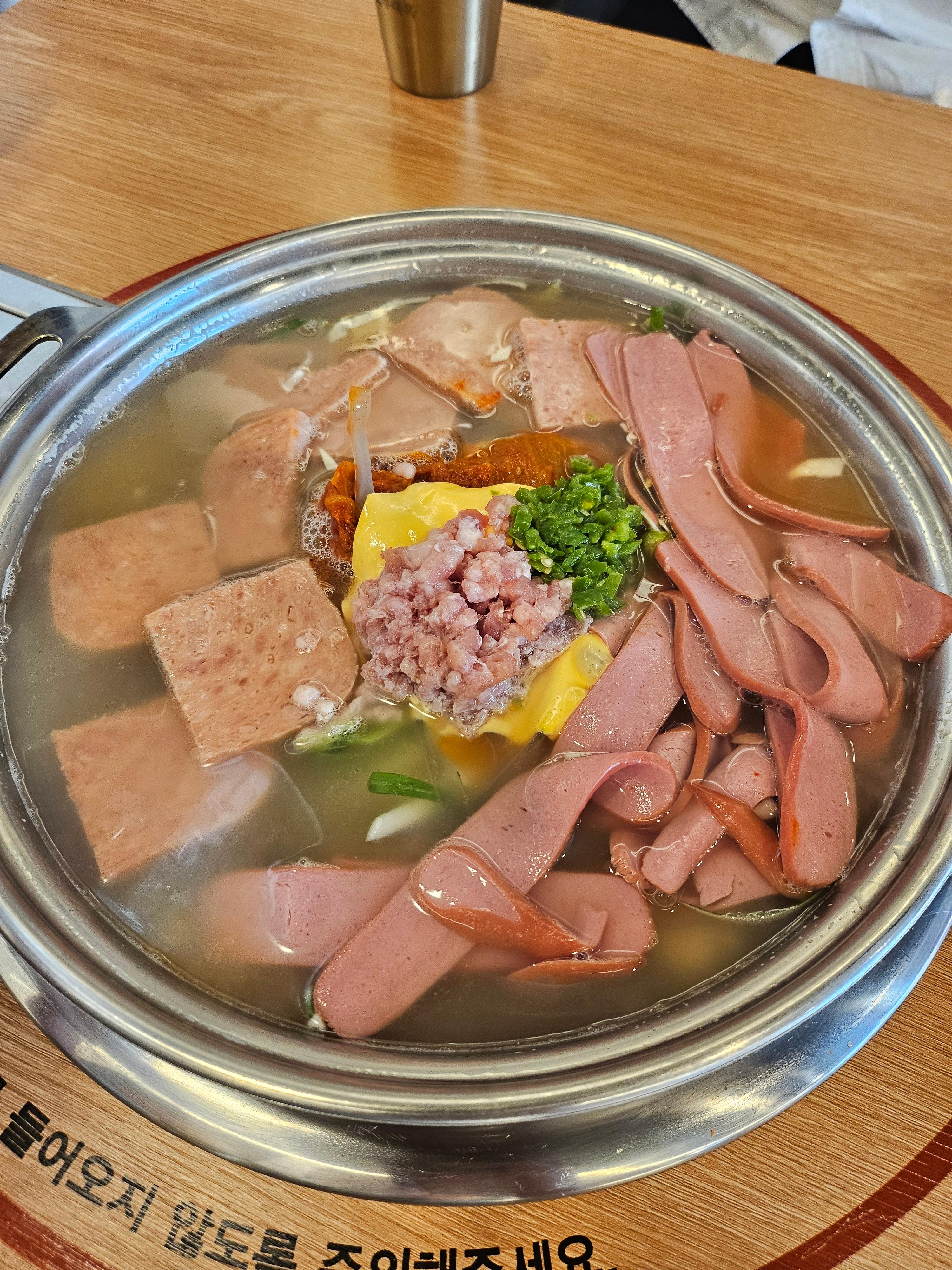 지난주 마포 부대옥에서 부대찌개를 맛본 후기를 공유드립니다. 첫 숟갈에 진한 국물 맛이 입안을 가득 채웠습니다. 햄과 소시지의 고소함, 김치의 매콤함이 조화를 이루며 밥 한 공기를 순식간에 비웠습니다. 라면사리를 추가해 푸짐함을 더했는데, 양도 넉넉해 배부르게 식사했습니다. 동료들과 함께한 점심이 더욱 즐거웠습니다.