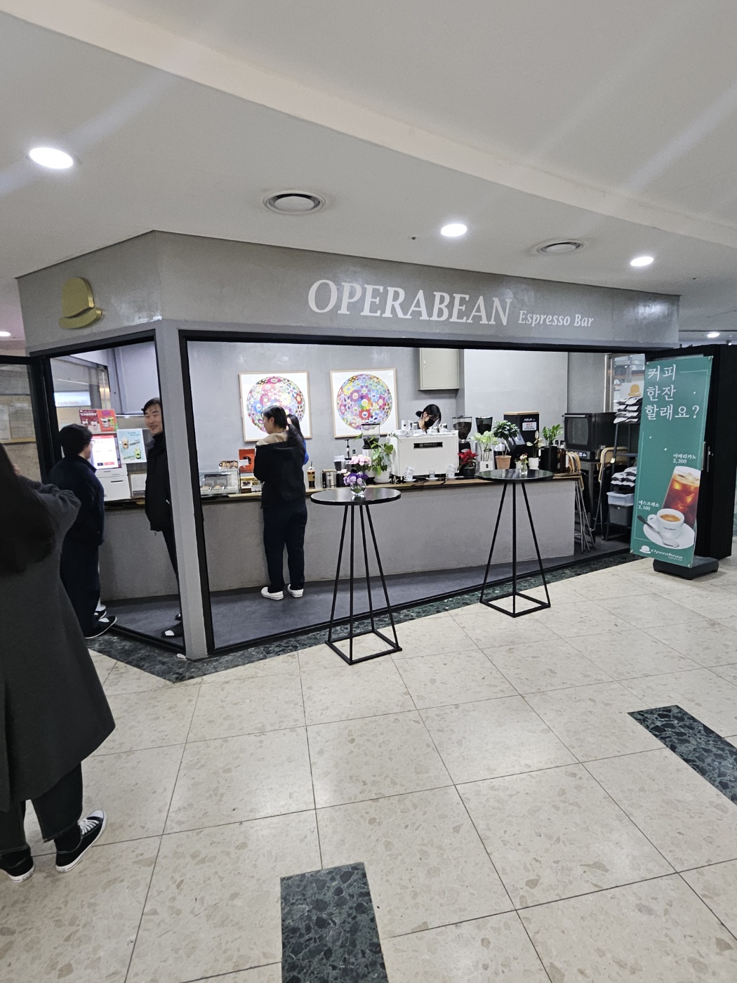 오페라빈 에스프레소바는 지하 공간을 활용해 차별화된 인테리어 를 완성했다. 벽면을 따라 설치된 간접 조명과 테이블마다 배치된 작은 식물들이 따뜻한 분위기를 연출하며, 한쪽 벽면에는 현지 아티스트의 추상화 작품이 전시되어 있어 예술적 감성 을 자극한다. 좌석은 2인용 테이블과 바 형태로 구성되어 혼자 방문해도 부담 없이 커피를 즐기기 좋다. 특히 조용한 환경 덕분에 커피 맛에 집중할 수 있다는 점이 매력적이다.