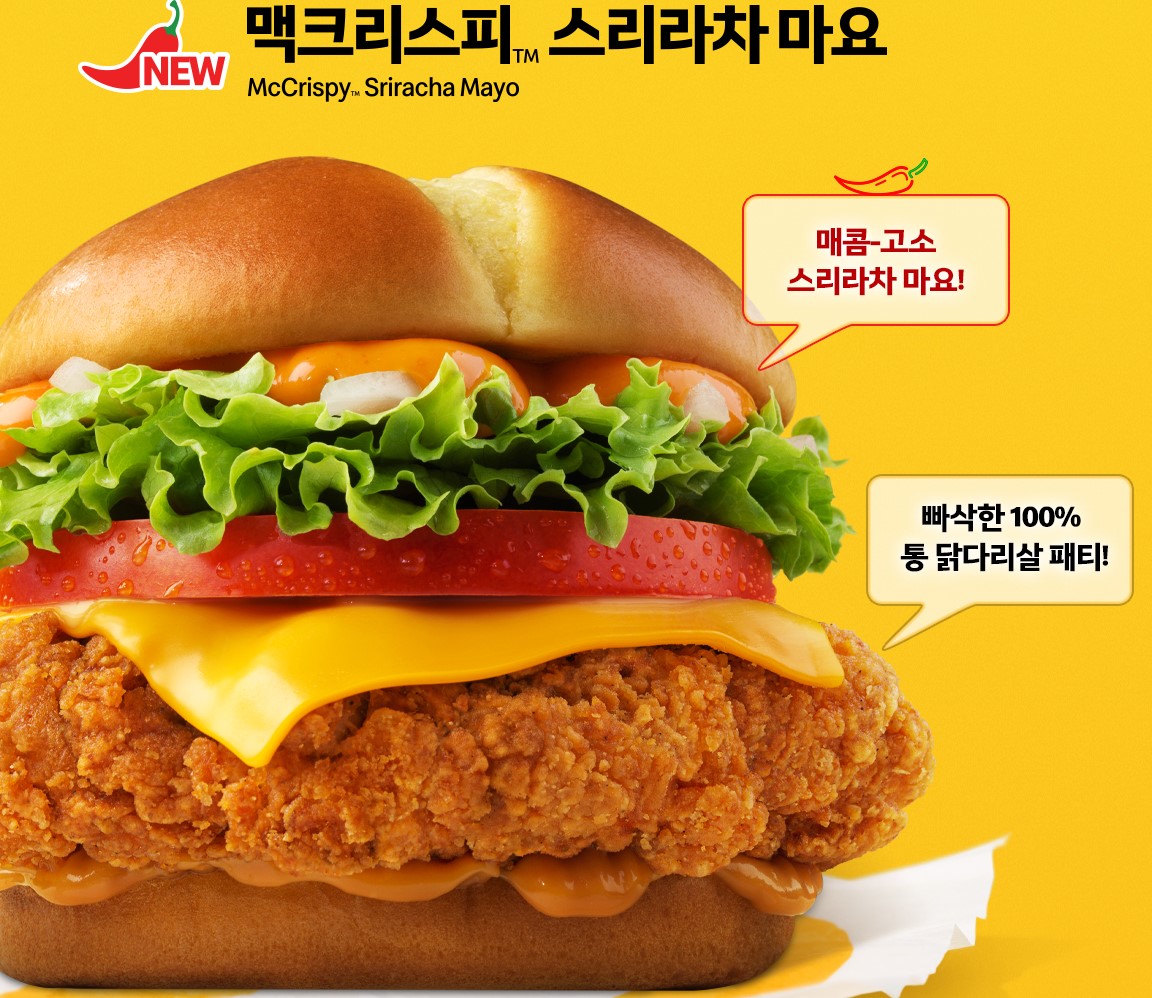 - 맥크리스피 스리라차 마요: 바삭한 치킨 패티와 매운 스리라차 소스가 완벽한 조화를 이룹니다.
