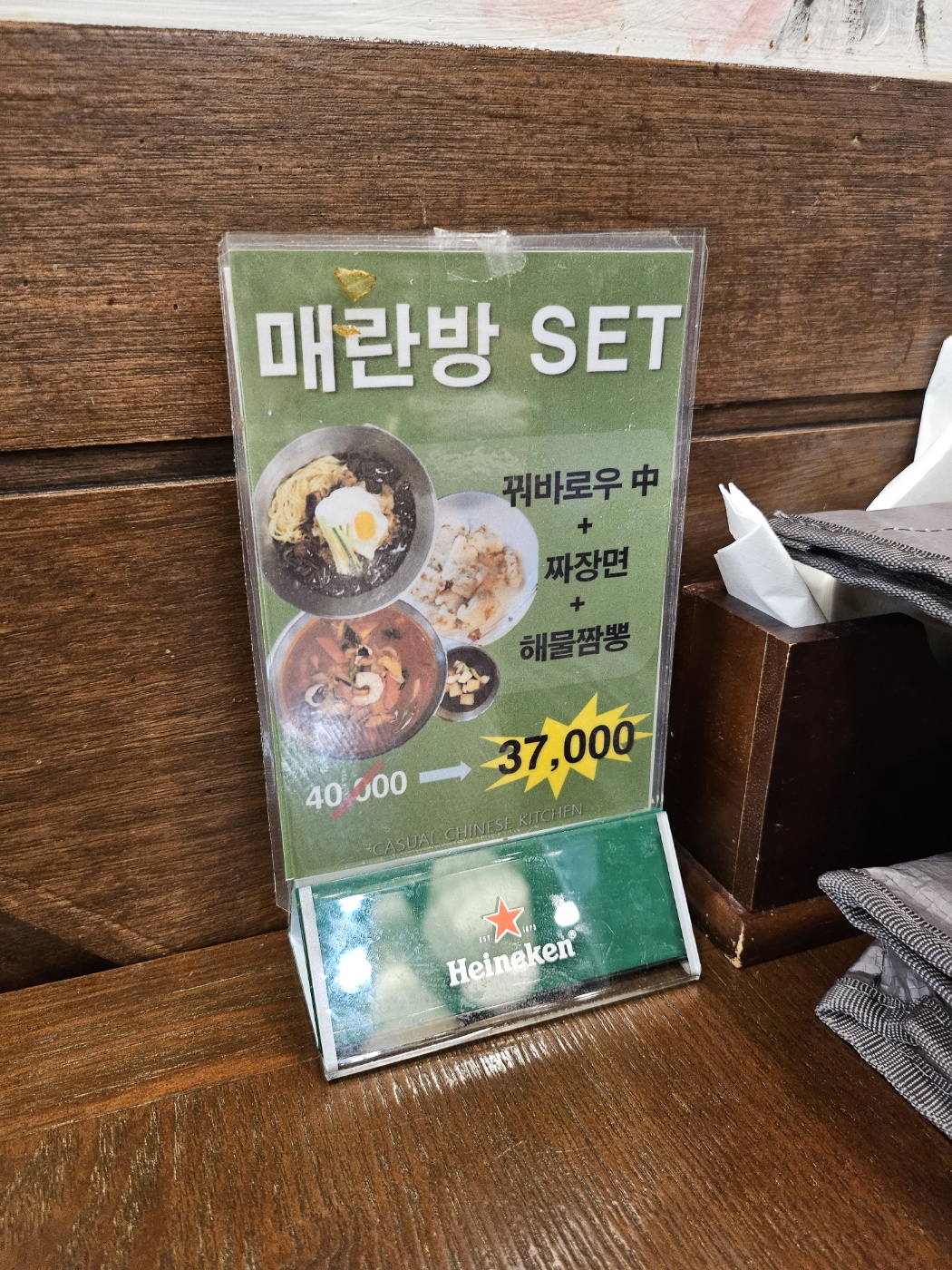 매란방에 도착하자마자 따뜻하고 분주한 분위기가 느껴졌습니다. 매장 입구에는 전통적인 중식 레스토랑의 장식들이 인상적이었고, 기대감을 증대시켰습니다. 입구를 지나면 널찍한 테이블들이 정돈되어 있었고, 중식당 특유의 향이 입맛을 돋우었습니다. 전반적인 인테리어는 전통과 현대적 감각이 잘 어우러져 있었습니다. 따뜻한 조명이 매장을 부드럽게 감싸주어 가족 모임에 적합한 분위기를 연출했습니다.