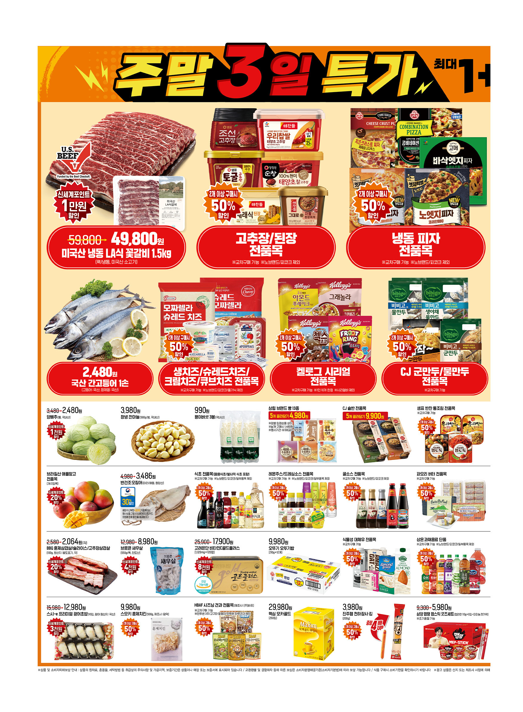 - 기타: 고추장, 된장, 시리얼, 치즈, 세탁 용품 등 다양한 품목 할인