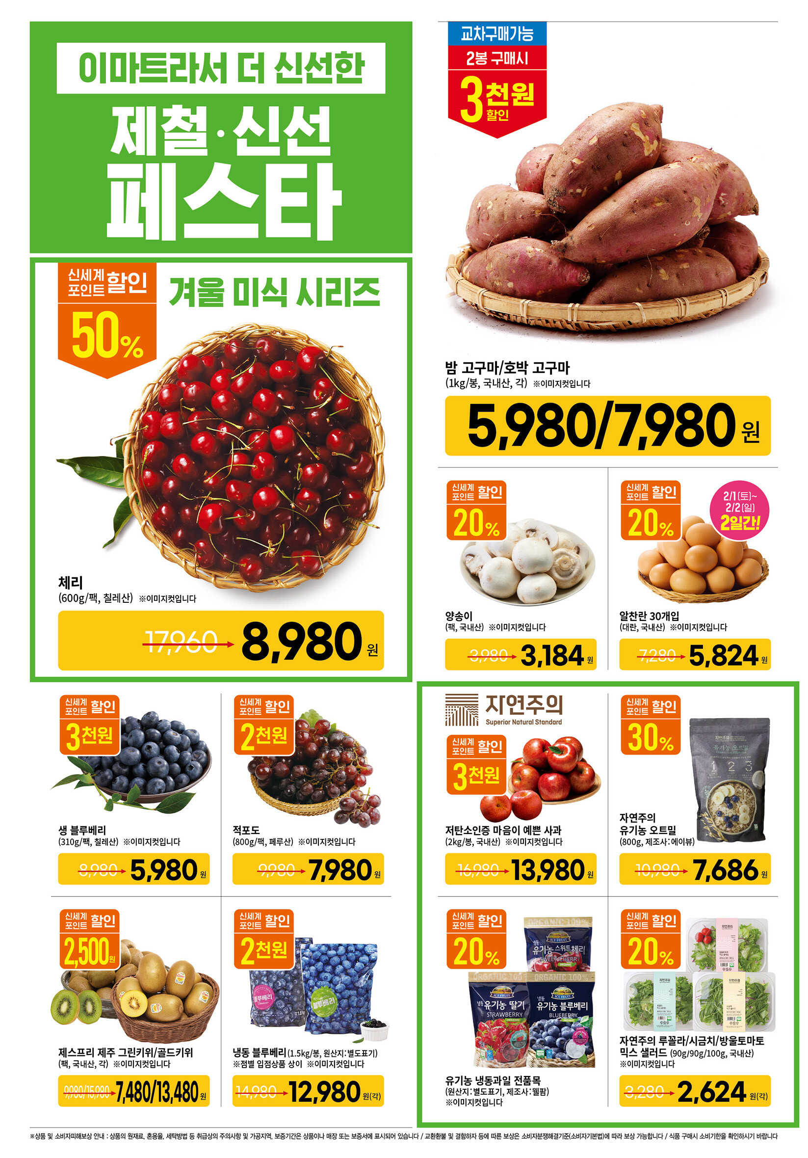 이마트 2025년 1월 31일(금)부터 2월 6일(목)까지 진행되는 전단 행사에 대해 자세히 소개해드릴게요. 이번 주 이마트는 다양한 할인 혜택과 신상품을 만나볼 수 있는 좋은 기회입니다. 가격과 품목을 잘 확인하시고, 필요한 제품을 현명하게 구매하시기 바랍니다. 아래는 각 날짜별 행사 품목과 가격을 정리한 내용입니다.