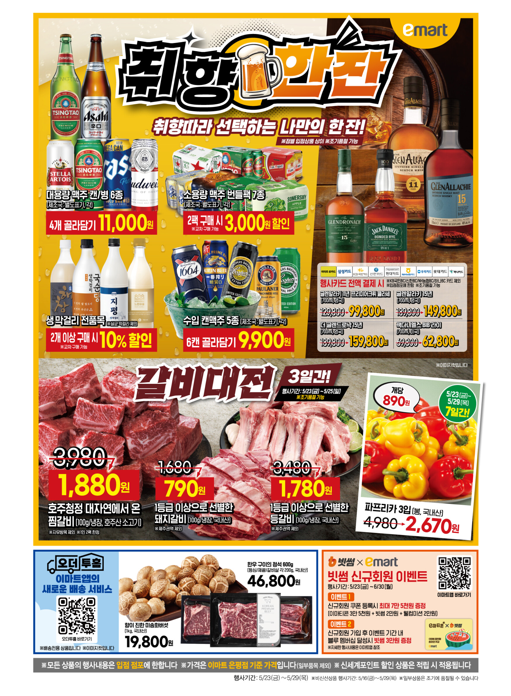 안녕하세요! 이번 주에도 어김없이 찾아온 이마트의 알뜰한 쇼핑 찬스를 여러분께 소개합니다. 5월 23일 금요일부터 5월 29일 목요일까지 진행되는 다양한 할인 행사와 특별 이벤트들을 꼼꼼하게 확인하시고, 똑똑한 쇼핑 계획을 세워보세요!