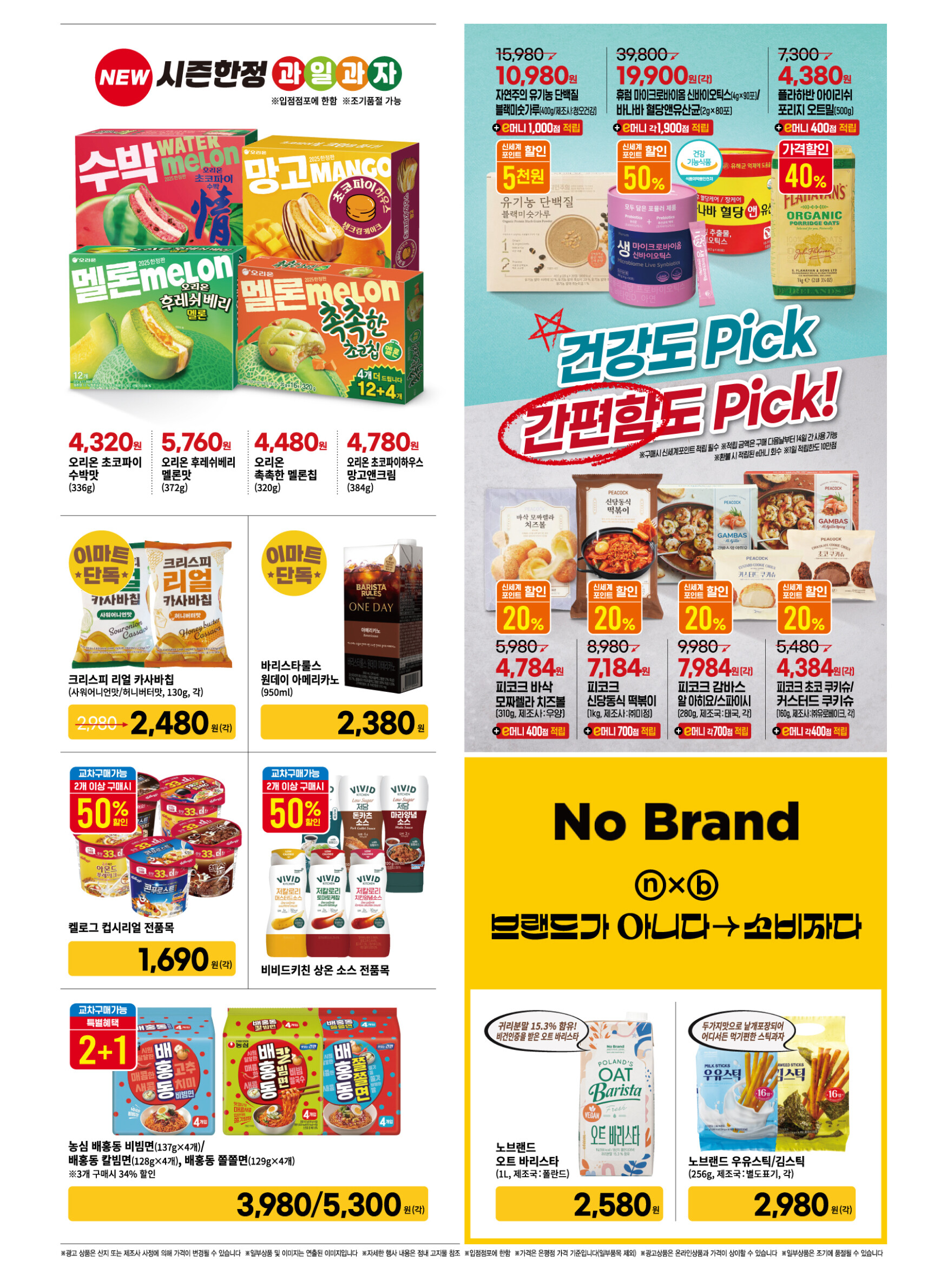 - 피코크 자연치즈 99% 트리플, 피코크 고추잡채&꽃빵, 피코크 매콤한 족석 쌀떡볶이, 피코크 꽁치 김치찜 (신세계포인트 적립과 e카드 동시 결제 시 40% 할인)
