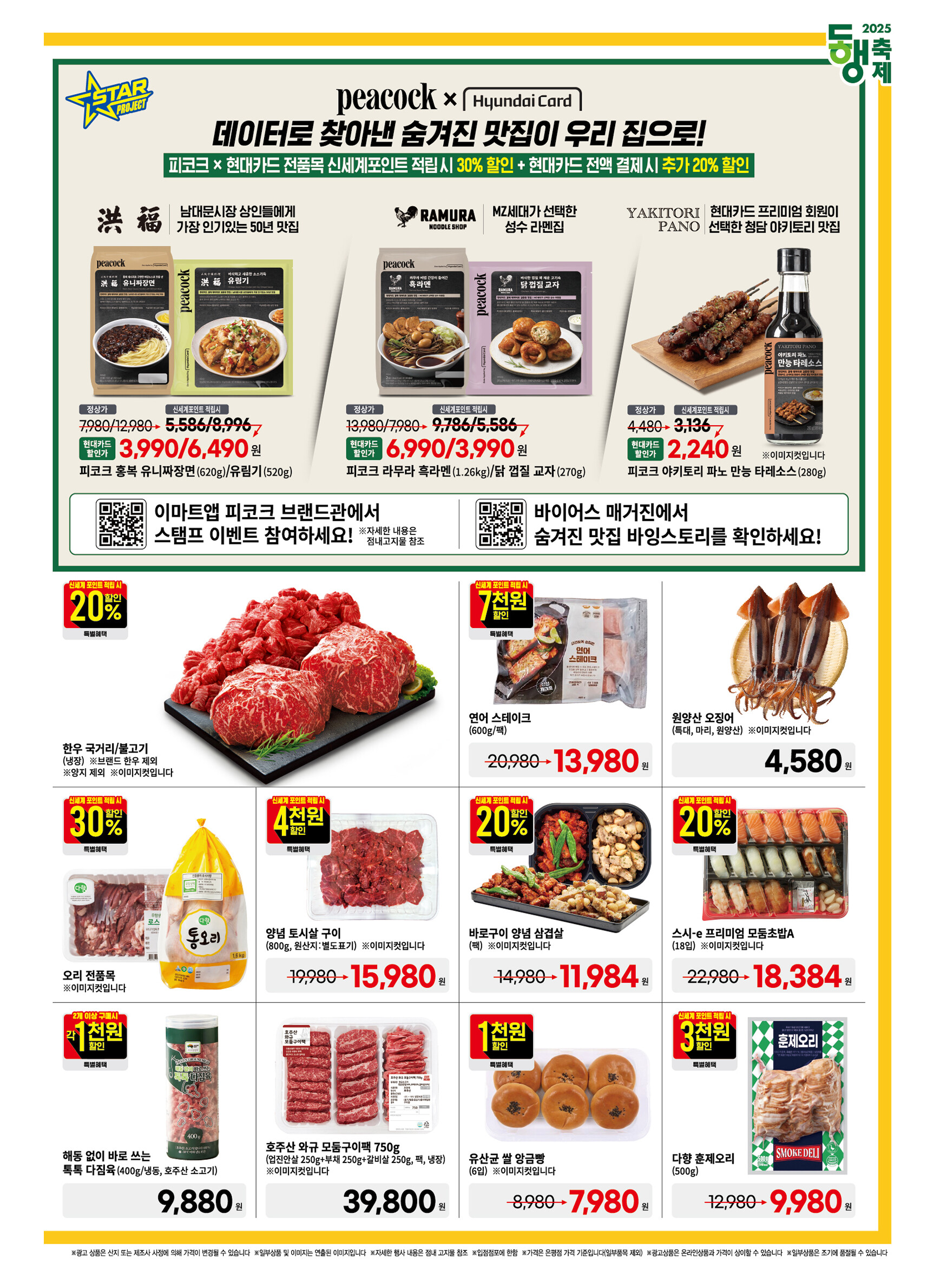이번 주 이마트에서는 이마트앱의 새로운 산지직송 서비스를 통해 미국산 LA식 꽃갈비와 서귀포수협 옥돔갈치 세트 등을 만나볼 수 있습니다. 또한, 피코크는 현대카드와 손잡고 파격적인 할인을 진행하고 있으며, 남대문시장 맛집 '홍복'과 성수동 라멘 맛집 '라무라'의 인기 메뉴를 피코크 상품으로 출시했습니다.