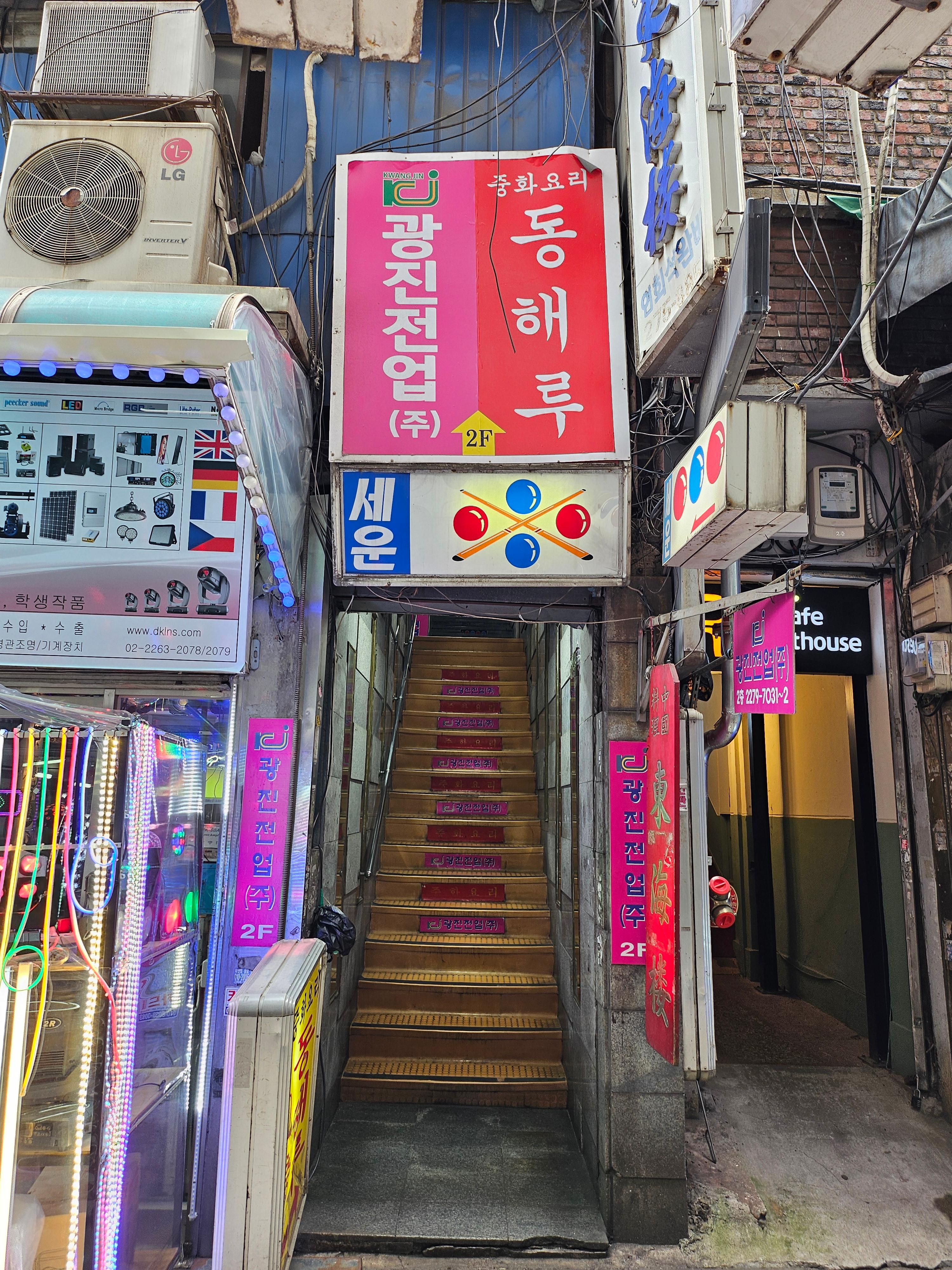 점심시간은 직장인에게 하루 중 가장 중요한 시간 중 하나인데요, 매일 똑같은 메뉴에 질려 새로운 맛집을 찾아 헤매는 분들을 위해 종로 세운상가에 위치한 숨겨진 보석 같은 중식당, '동해루'를 소개합니다. 이곳은 세운상가 인근의 작은 골목길 2층에 자리하고 있어, 자칫하면 그냥 지나칠 수 있지만, 한 번 맛보면 그 맛을 잊지 못하고 다시 찾게 되는 매력을 지닌 곳입니다. 특히 오랜 세월 자리를 지켜온 노포 특유의 고즈넉한 분위기 속에서 맛볼 수 있는 짜장면과 짬뽕은 바쁜 일상 속에서도 소박하지만 만족스러운 점심 식사를 선사합니다. 저처럼 자극적인 맛에 길들여진 혀를 가진 분들도 은은한 매력에 빠져들게 될 것입니다.