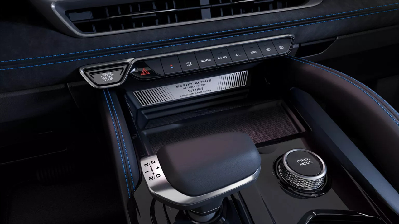 실내는 조수석 3분할 12.3인치 디스플레이가 인상적이며, 공조 및 엔터테인먼트 장치는 물리 버튼으로 깔끔하게 구성되었습니다. 알칸타라 소재와 푸른 스티치로 마감된 대시보드는 고급스러움을 더합니다. 알핀 트림의 센터 콘솔과 스티어링휠은 프랑스 국기를 상징하는 색상으로 장식되어, 르노의 감성을 잘 표현합니다.