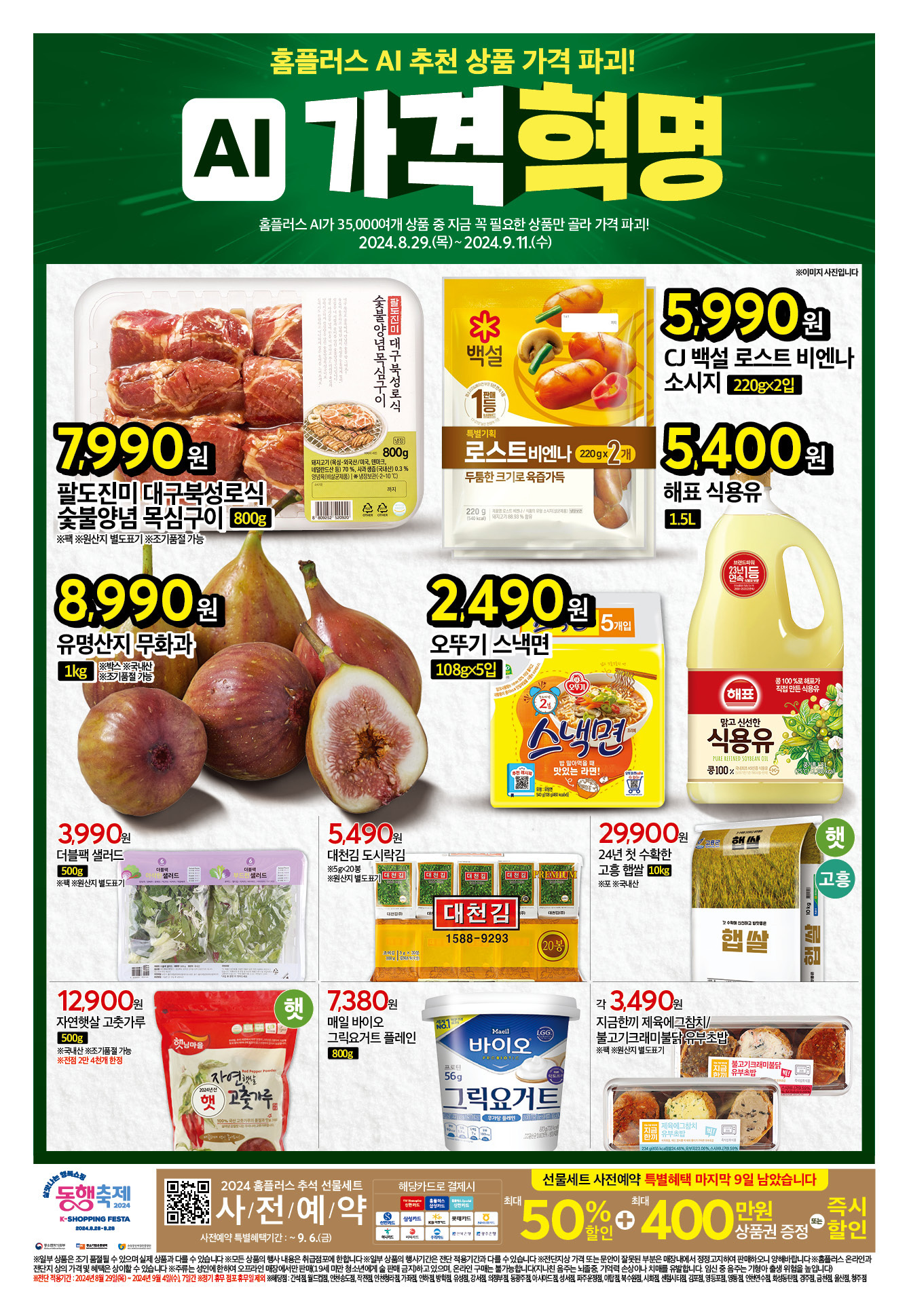 - 혜택: 행사 기간 동안 인기 상품을 특별 할인가에 만나볼 수 있으며, 마이홈플러스 멤버십 회원을 위한 추가 혜택도 마련되어 있습니다.