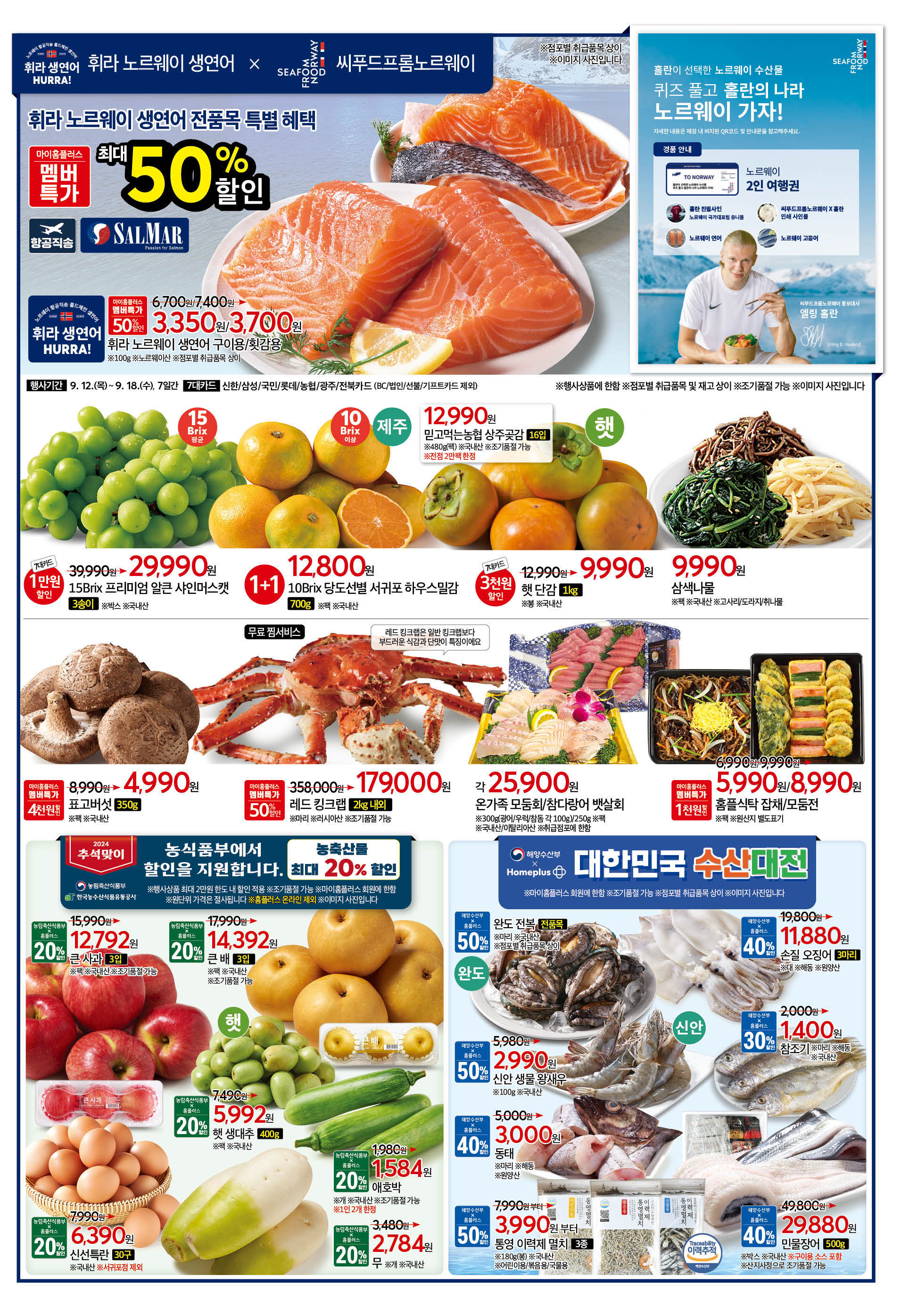 마이홈플러스 멤버십 회원을 위한 특별 혜택도 마련되어 있습니다. 9월 12일부터 18일까지 농림축산식품부가 지원하는 할인 쿠폰을 통해 주요 과일과 채소 등 필수 품목을 최대 20% 할인된 가격으로 구매할 수 있습니다.