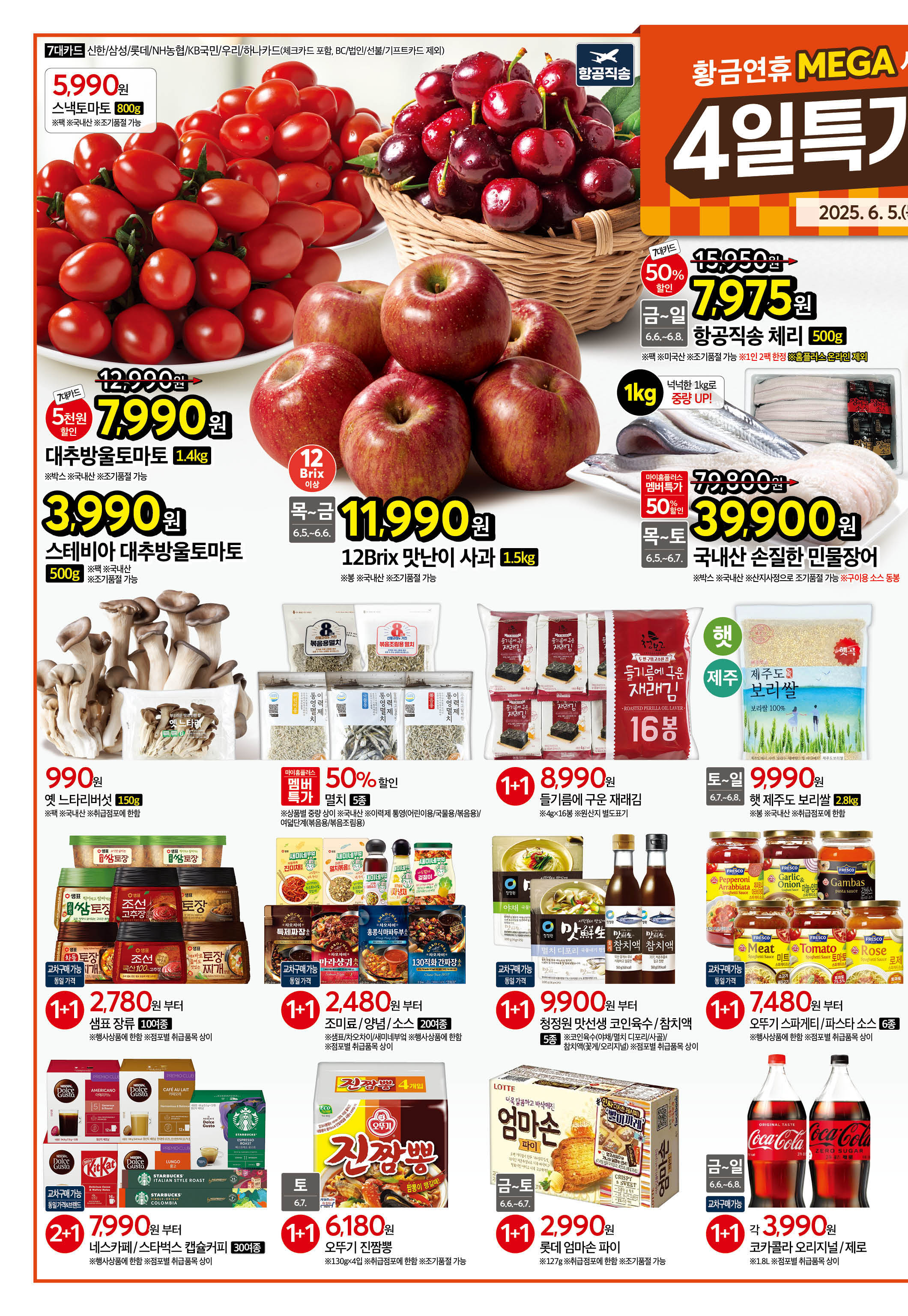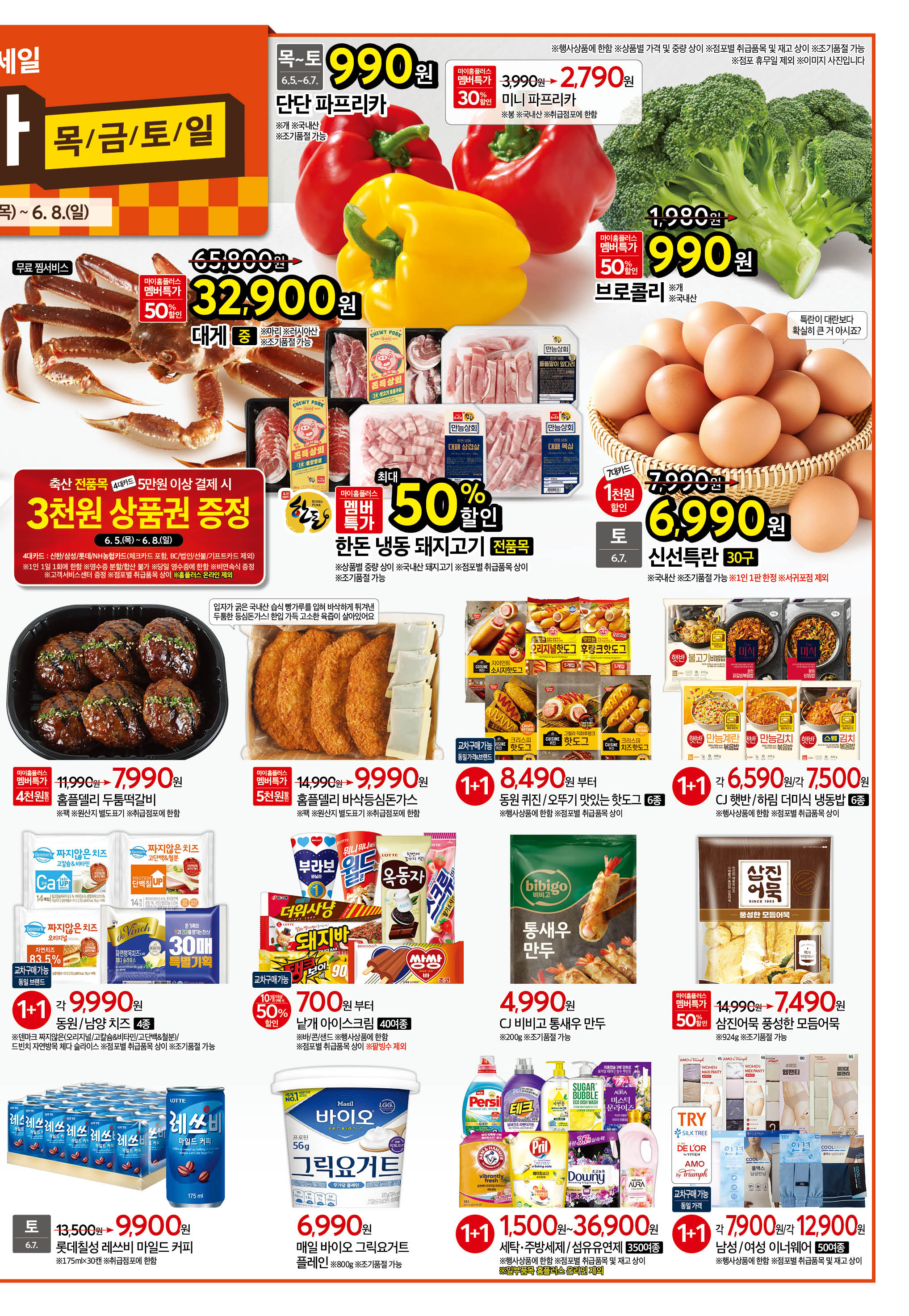 - 단단 파프리카 개당: 990원 (6월 5일~6월 7일)