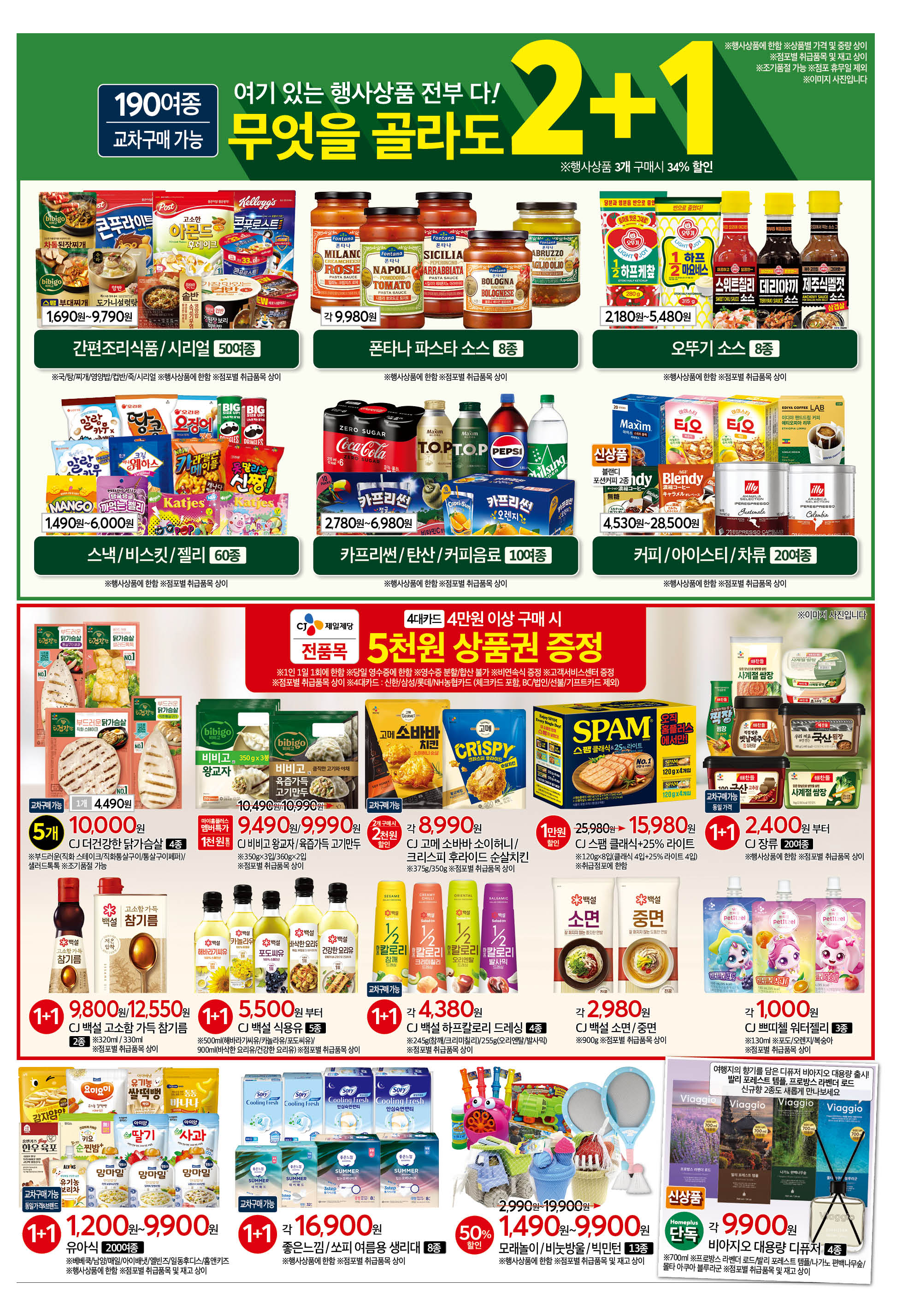 - CJ 장류 20여 종, 백설 참기름, 식용유 5종, 하프칼로리 드레싱 4종 1+1