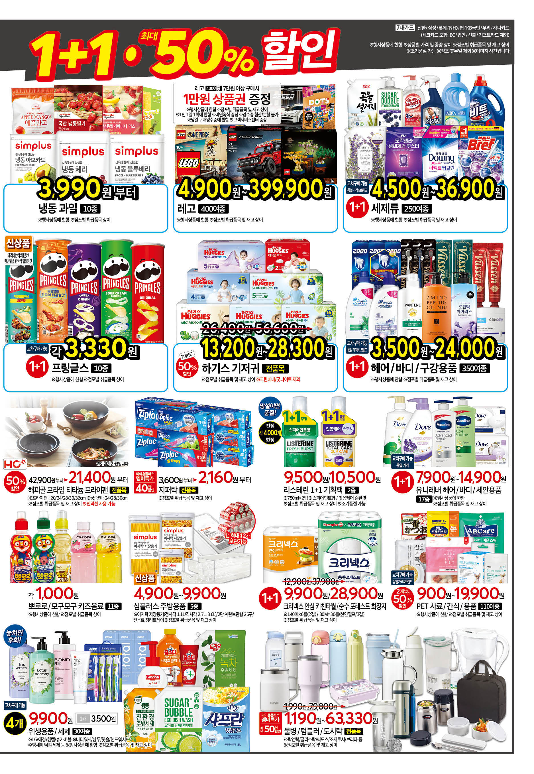 - 세제류, 헤어바디/구강용품: 1+1 행사